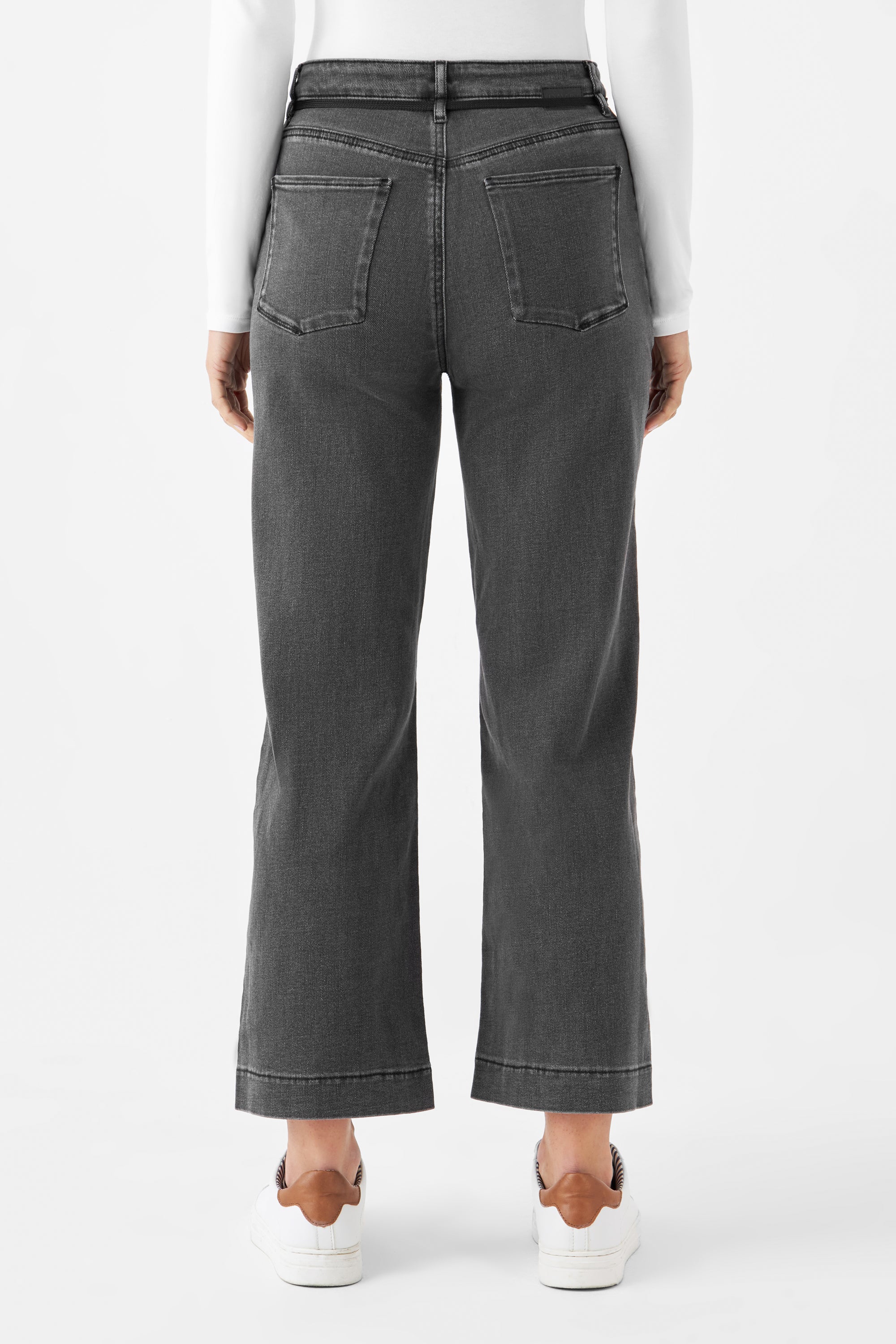 DEW Flared Cropped Soft Denim - French Pocket - Medium Grey