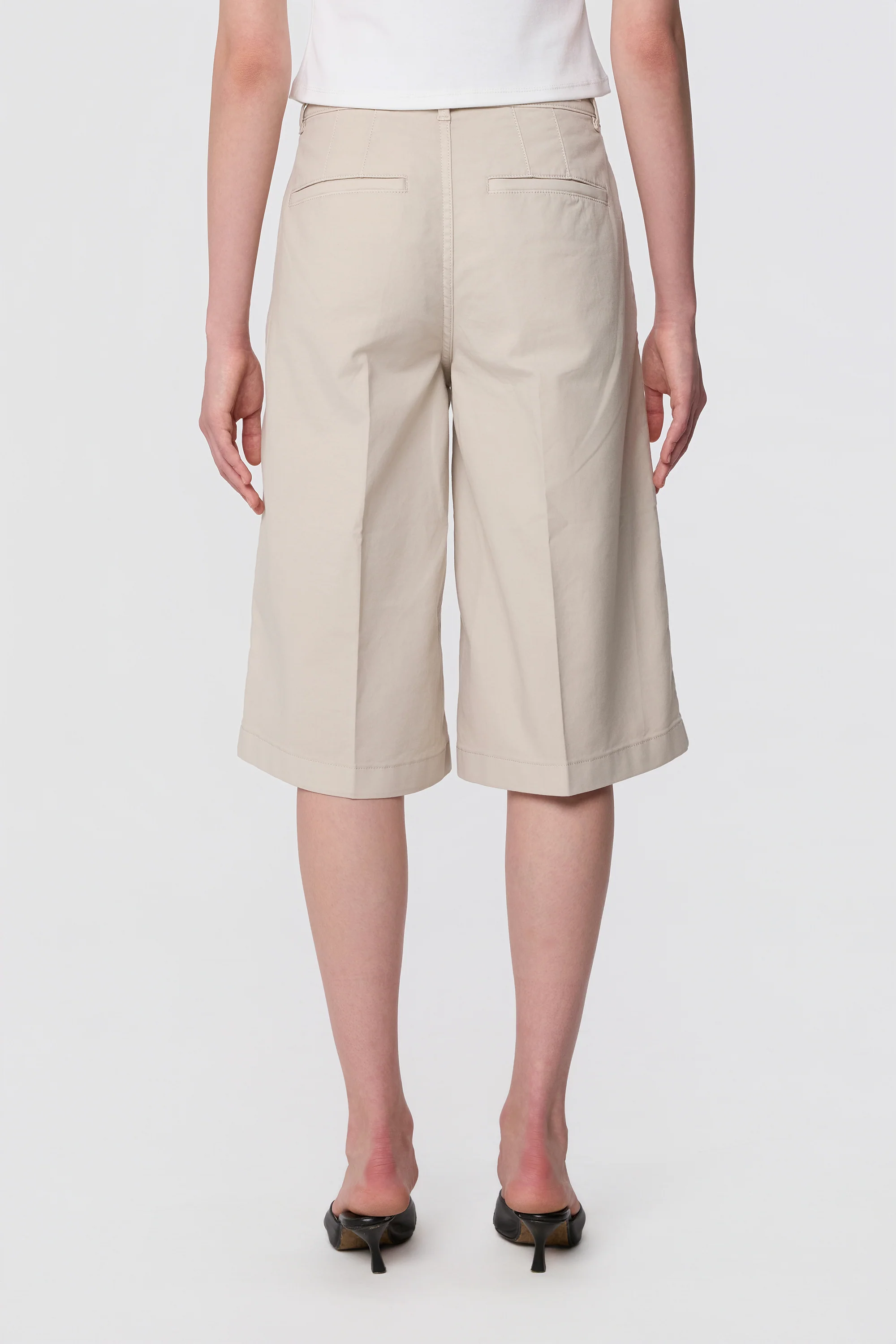 EDEN ist eine High-Waist-Short mit elegantem, leicht ausgestelltem Bein. Sie sitzt entspannt an Taille und Hüfte und endet knapp unter dem Knie – für eine moderne, feminine Silhouette.